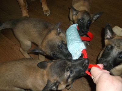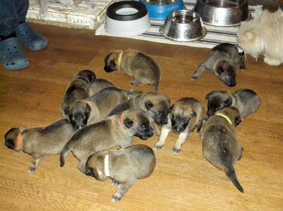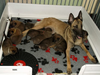 BREEDER Having decided that a Malinois is indeed the dog for you, it's time to find the right breeder to acquire a pup from. (Unless, of course, you are wanting to give a home to a rescue dog, which is dealt with under "Rescue".) There are several VERY important points to bear in mind here. * Your very first consideration should be whether you are looking for a show or working type dog -or indeed a mix of both. This decision you need to base on what you want to do with the dog. An active pet, agility, obedience, rally, flyball, working trials, a running companion and of course showing, the show type dog is excellent for all of these roles. Although it can and has been done, the show type is generally less suitable for IPO, police and army dogs and other similar professional roles, simply due to their lower drive. The working type is ideal for the experienced owner who wants to compete at a high level in whatever their chosen dog sport is, as well as the professional working dogs. It is not suitable as a family pet unless it is also worked a LOT, and although they can be entered in shows, they will never win high honours due to their different looks. * The second most important point to realise is that it is far more important to choose your ideal breeder, rather than search for the ideal pup. A good, responsible breeder will be there for you during the life of your dog, always willing to help with advice. * Next you need to be prepared to wait. Do NOT go out and buy the first pup you see advertised because the timing suits you. The best breeders tend to have waiting lists for their pups, often a year in advance, and if you are wanting a good quality dog that will spend the next 12-15 years or more with you, getting the right pup is worth waiting for. Many good breeders do not need to advertise at all, unless they've had a cancellation, and so it is better to get in touch with breeders well in advance. Responsible breeders do not churn out pups on a conveyor belt, they breed when they want to keep a pup back for themselves. For some this may mean once or twice a year, for others it can mean years in between each litter. Contact various breeders and if one you like are not planning any pups, ask if they can recommend somebody who is. * Be prepared to travel. The perfect pup for you may be at the exact opposite end of the country to where you live. A long journey can be awkward, but is worth it in the long run. * Ideally, visit the breeder to meet their dogs BEFORE they have a litter of pups. It's not the cute puppies you need to fall for -everyone loves puppies- it is the adults living with the breeder. They are your best indication of what a pup from that breeder will turn out like. So how do you know if a breeder is a good one or not? *Well, the first clue is whether they ask you questions and ask you about your circumstances. Why do you want a Malinois? What is your plan for it? What is your general dog experience? Is somebody at home during the day so a pup would not be left alone? Do you have children, other pets? Any questions that will help the breeder determine whether you will be able to give a good home to one of their puppies. If a breeder does not ask such questions, run a mile! Those breeders are the ones that are only interested in making money. Once you've paid for the pup you will never hear from them again, let alone be offered any help should you need it. * Ask the breeder why they are having a litter. If the answer is that they thought it would be a nice experience, or that they decided to mate their bitch because so many of their friends had said they wanted a pup, again turn your back on this breeder. Responsible breeders have an actual relevant goal with their breeding, such as producing their next pup for agility or the show ring, or to improve on something in the variety. Responsible breeders are typically involved with dog activities such as breed clubs, training clubs, shows or other competitions. That's how they decide whether their dogs are good enough to breed from or not. Their dogs prove themselves in competition. A good tip is to Google the breeder's name and Kennel name, as you will quickly find out if there are competition results recorded on the internet. That shows you the breeder is active within the breed. If all you find is adverts of pups for sale, again be suspicious. * Make sure that the breeder has verifiable, up to date health tests for both parents of any pups. This does not mean a general check at the vet. Both parents should be hip scored under the Kennel Club/British Veterinary Association scheme, with an acceptable score. This involves x-rays and then a panel of vets viewing the images and scoring them. The perfect hip is scored 0, the worst possible 53. The left and right hip's scores are then added together, giving a total that can then vary from 0 to 106. The lower the score, the better the hips are. The average in the Malinois is around 8, which is very good indeed and indicates that hip dysplasia is not a huge problem with Malinois. Do not be put off by a slightly higher score -anything up to 14 or 16 is still okay; it is not likely to produce pups that will develop problems. Some breeds have average scores much higher than this. Obviously the aim is for as low a score as possible, but a good breeder takes everything into account when planning a litter -health, looks and of course temperament. Some breeders also x-ray and score the dog's elbows. The scoring process there is different, ranging from 0 to 3 on each elbow, and the total score is then whichever is the highest elbow's score. Eg. a dog scored as 0-1 would total 1, but a dog scored as 1-1 would also score as 1. A 2-1 would score 2, and so on. It is highly recommended to only breed from dogs having scored zero. Elbow dysplasia is not a big problem in Belgian Shepherds, and elbow scoring is not a KC or breed club requirement, but it certainly doesn't hurt to have it done. Eyes sh