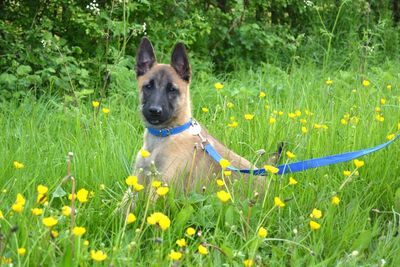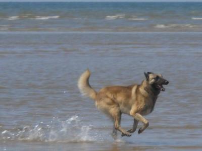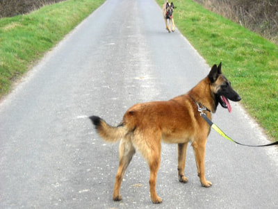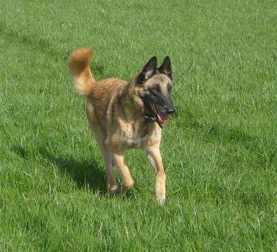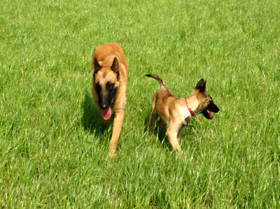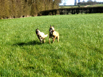 | EXERCISE A Malinois puppy is going to grow into a fairly large dog, and as such he or she will be growing until about 18 months of age. The adult height may well be reached at as an early age as 6 or 7 months but the bones will continue to develop and the body will fill out. The bones will not be fully developed until 18 months of age. Because of this, it is ESSENTIAL not to over exercise a growing dog, or bone problems can result. A young puppy, up until the age of about 4 months, should not go for proper walks at all. He or she needs to be getting used to a collar and lead and need to be taken out for short walks to get used to all new impressions, people, dogs, cars etc , but this should at first consist of carrying (or driving) the puppy to the nearest park or suitable area, and then letting him or her wander around at their OWN pace, with you strolling around slowly or standing still. As the puppy grows, the amount of exercise can gradually be increased, (a good rule of thumb is to allow 5 minutes walk per month of age, eg. at 4 months 4 x 5 equals 20 minutes) but no long walks should be given until 7 or 8 months of age, just shorter ones. Likewise, growing puppies should not be allowed to FREQUENTLY climb stairs and jump over objects. Do practice using stairs though, such as when out and about socialising –but once a week or so is quite enough. (No agility jumps until at least 12 months old -but if you are interested in agility, do practice the tunnels, the weaves, the seesaw etc from an early age!) From 18 months onwards, the dog can be given unlimited exercise, but do build it up gradually. You will find that it is more or less impossible to tire an adult Malinois out! At least an hour a day is necessary, and do add training exercises so they dog gets to use its brain. |